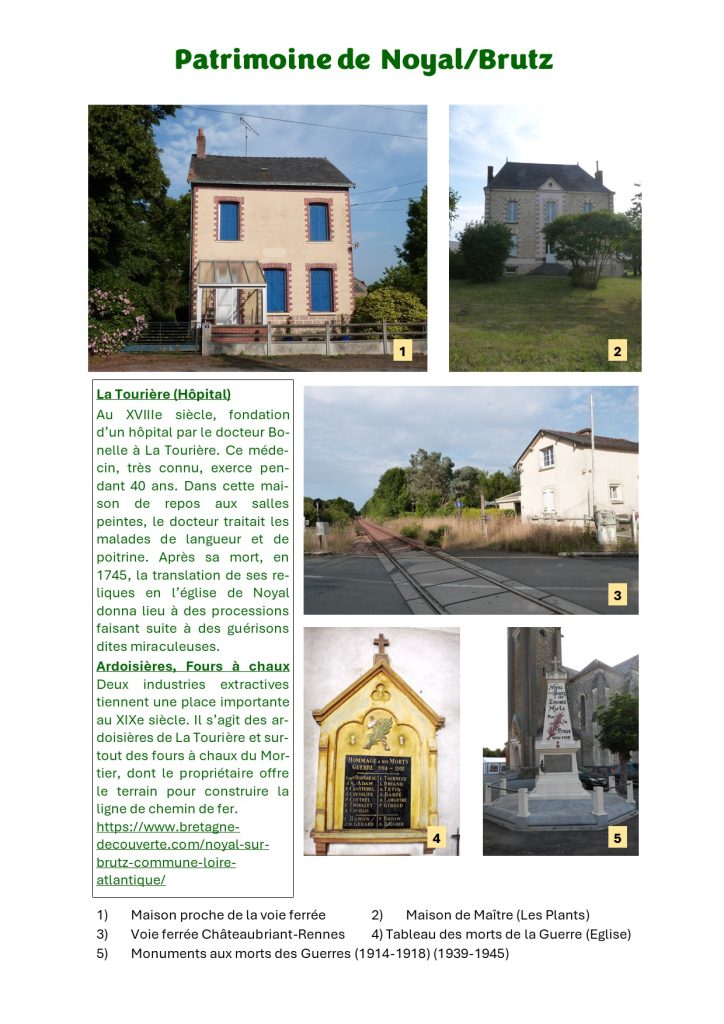 2) Voie ferrée Châteaubriant-Rennes 4) Tableau des morts de la Guerre (Eglise)