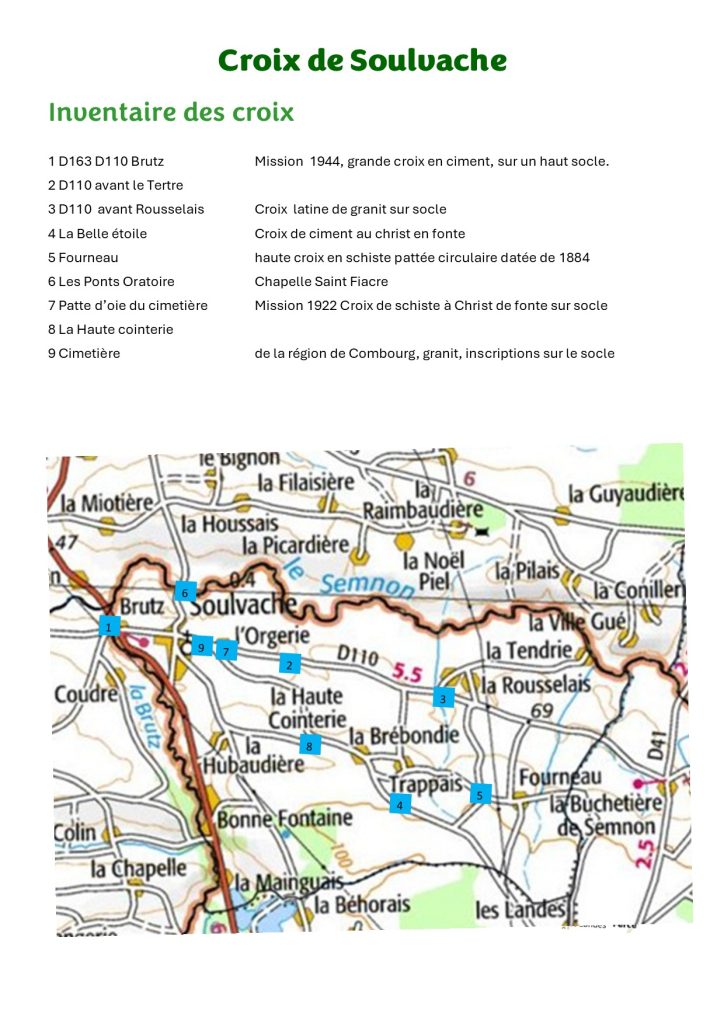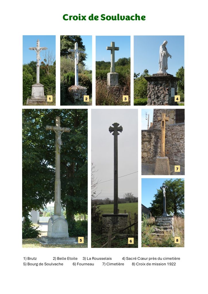 5) Bourg de Soulvache 6) Fourneau 7) Cimetière 8) Croix de mission 1922