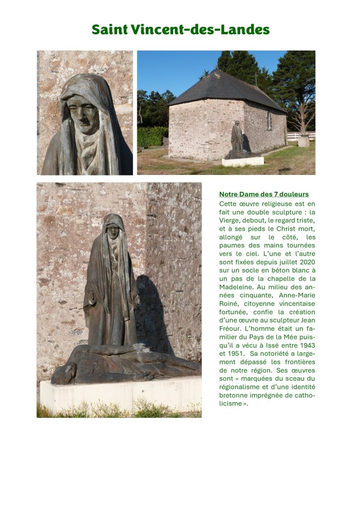 Au milieu des années cinquante, Anne-Marie Roiné, citoyenne vincentaise fortunée, confie la création d’une œuvre au sculpteur Jean Fréour.
