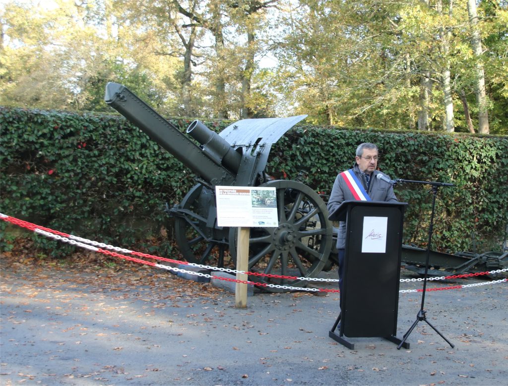 Inauguration du Nouvel emplacement pour le canon obusier par la municipalité d’Héric lors des cérémonies du 11 novembre 2025, en présence de l’association des anciens combattants.