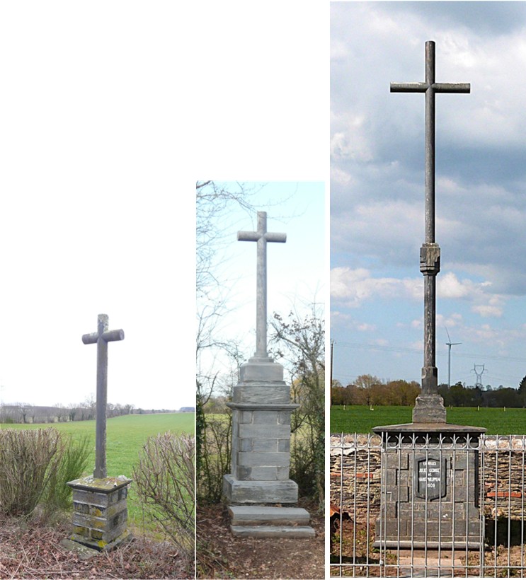 Croix Franck : petit modèle (Roche-aux-loups : Marsac/Don), Moyen modèle (La Clardière : Vay, signée et datée 1876), Grand modèle (Les Mortiers : Issé)