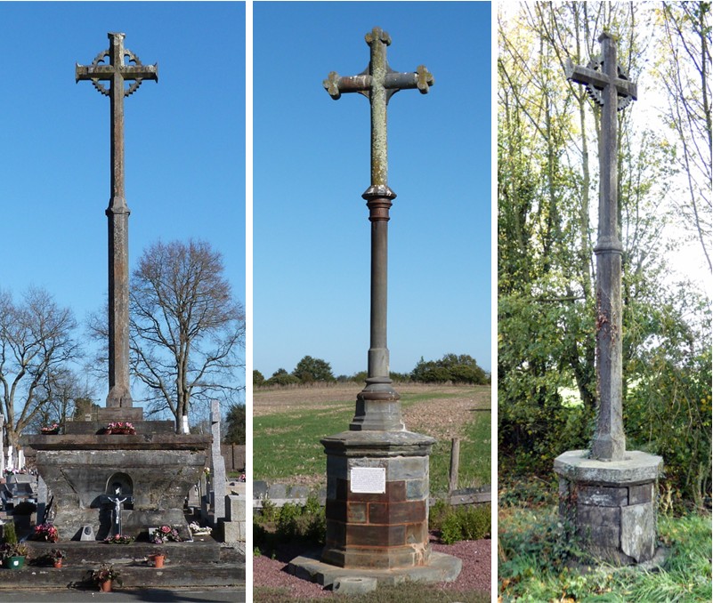 Deux croix pattées fines à Sion (La Cour de Limèle, La Grée à Midi) et une à redent (Gergaudais : Ruffigné)