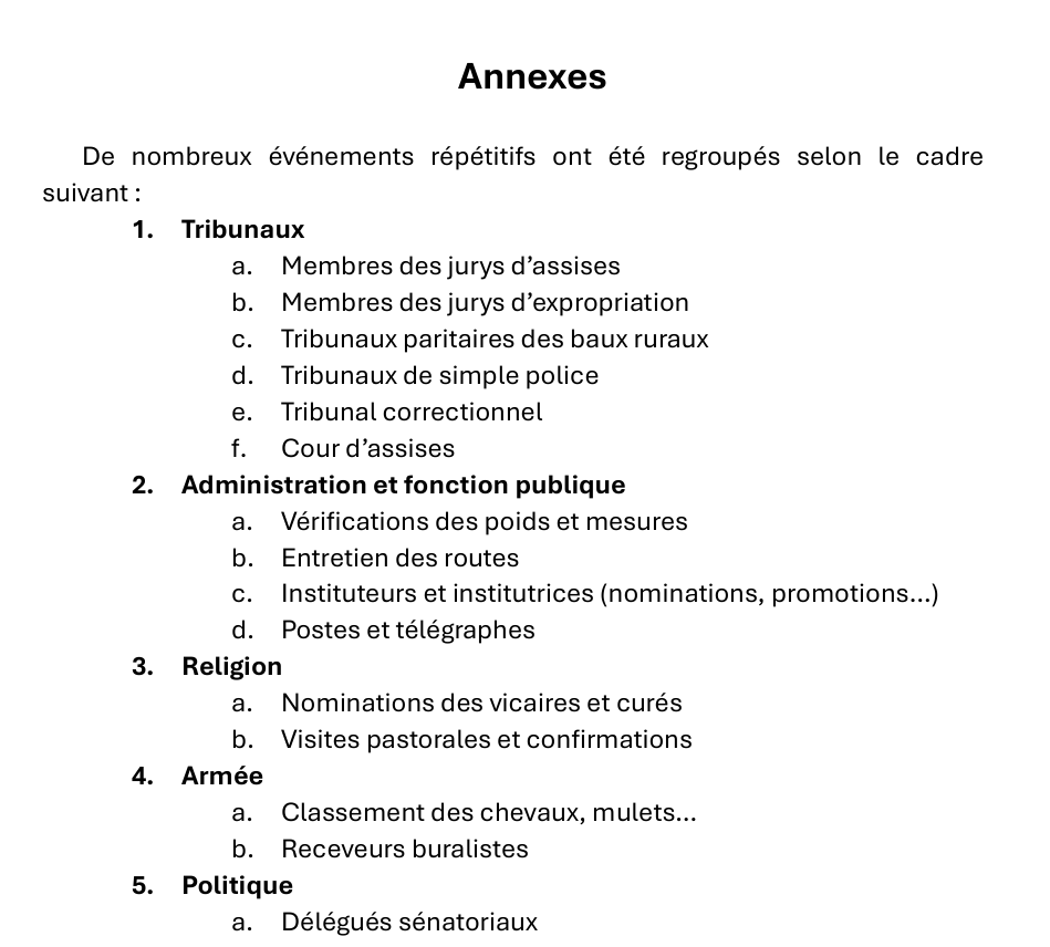 - Placés à la fin de l’ouvrage, – – Les informations répétitives, concernant les nominations, les dates de visites régulières, les prix, les décorations…