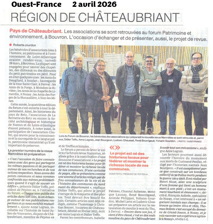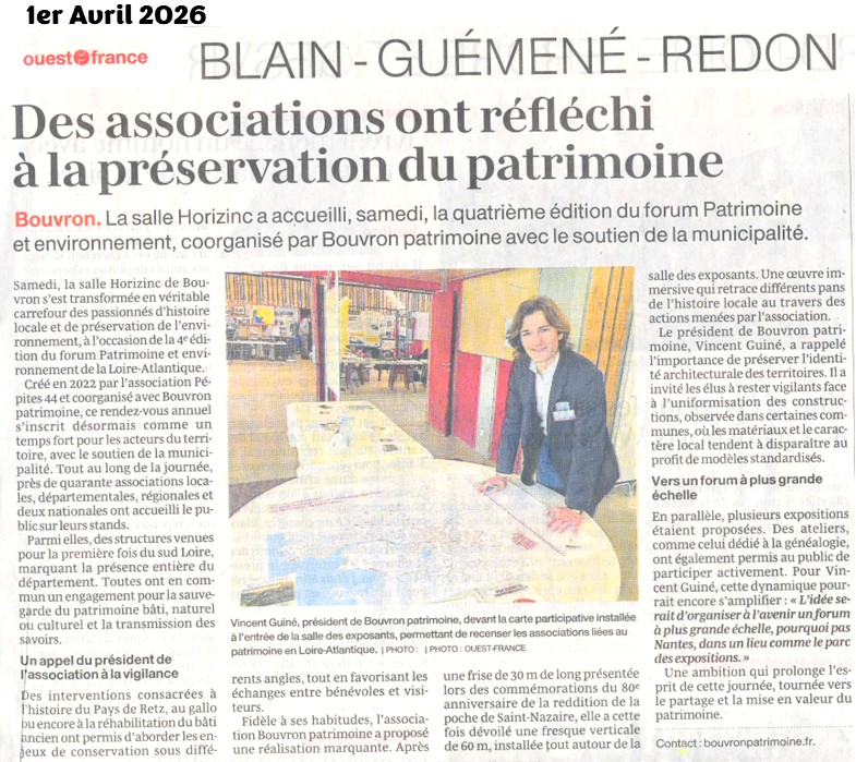 Mars avril 2026, ce que PEPITES44 a retenu de l’actualité du Pays du schiste en Loire-Atlantique : Bouvron le 28 mars 2026, Forum Patrimoine et Environnement à la salle Horizinc de 10H00 à 18H00, Sion-les-Mines, tous les mercredi d’avril, aux forges de la Hunaudière, l’art de la Fonderie, de 14H45 à 17H15.