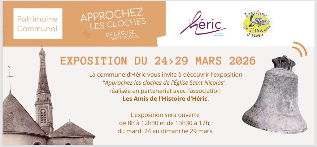 Du mardi 24 au dimanche 29 mars, la commune d’Héric propose une exposition consacrée aux cloches de l’église Saint-Nicolas, réalisée en partenariat avec Les Amis de l’Histoire d’Héric.